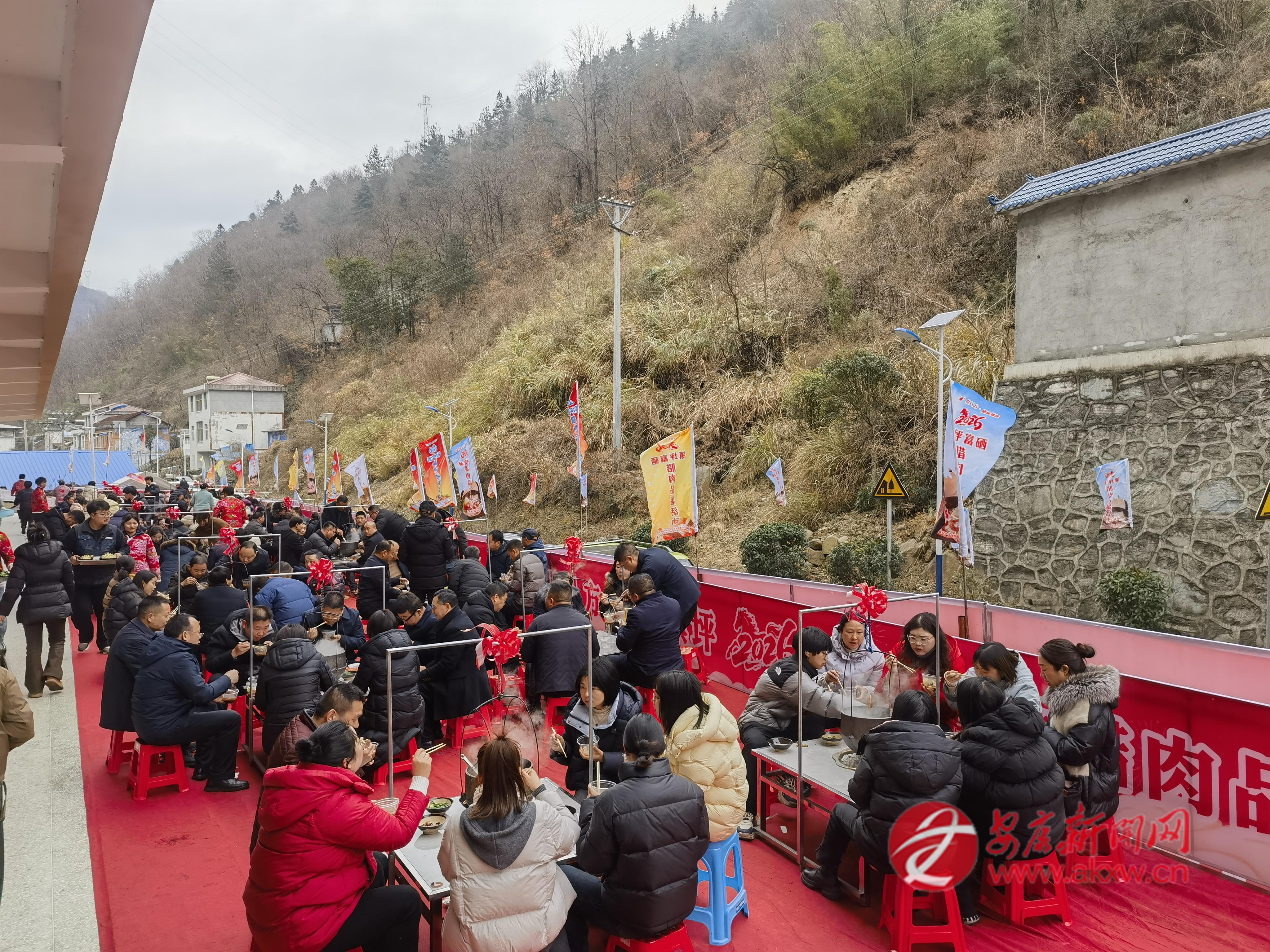 活動(dòng)現(xiàn)場(chǎng),一口巨型大鐵鍋格外引人注目,它可以燉500斤肉,可供1000人同時(shí)品嘗鎮(zhèn)坪富硒臘肉。同時(shí),20個(gè)吊鍋中,臘肉與香菇、竹筍、干洋芋果果一同燉煮,香氣四溢,讓人垂涎欲滴。賓客們圍坐一起有說(shuō)有笑,品嘗著可口地道的鎮(zhèn)坪臘肉,不僅是一場(chǎng)臘肉美食的集會(huì),更是一種非遺技藝的傳承。“早就聽(tīng)說(shuō)陜南鎮(zhèn)坪的富硒臘肉有名,這次專(zhuān)程趕來(lái),就為這一口地道的臘味,品嘗后覺(jué)得這臘肉的味道太美了!”在活動(dòng)現(xiàn)場(chǎng),一位來(lái)自西安的游客李先生在品嘗鎮(zhèn)坪臘肉后高興地說(shuō)道。