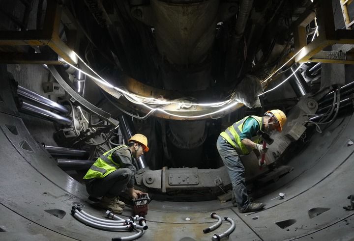 中鐵十八局集團工人在石家莊市地鐵5號線一期工程01工區(qū)建設工地施工(2025年10月24日攝)。新華社記者 楊世堯 攝