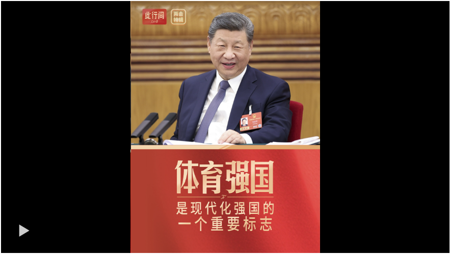 全國(guó)兩會(huì)“下團(tuán)組”,習(xí)近平總書(shū)記深刻指出:“體育強(qiáng)國(guó)是現(xiàn)代化強(qiáng)國(guó)的一個(gè)重要標(biāo)志?!薄笆逦濉币?guī)劃綱要草案提出了體育強(qiáng)國(guó)等16個(gè)“強(qiáng)國(guó)”目標(biāo)。闊步新征程,要繼續(xù)弘揚(yáng)中華體育精神,苦干實(shí)干,砥礪奮進(jìn)!