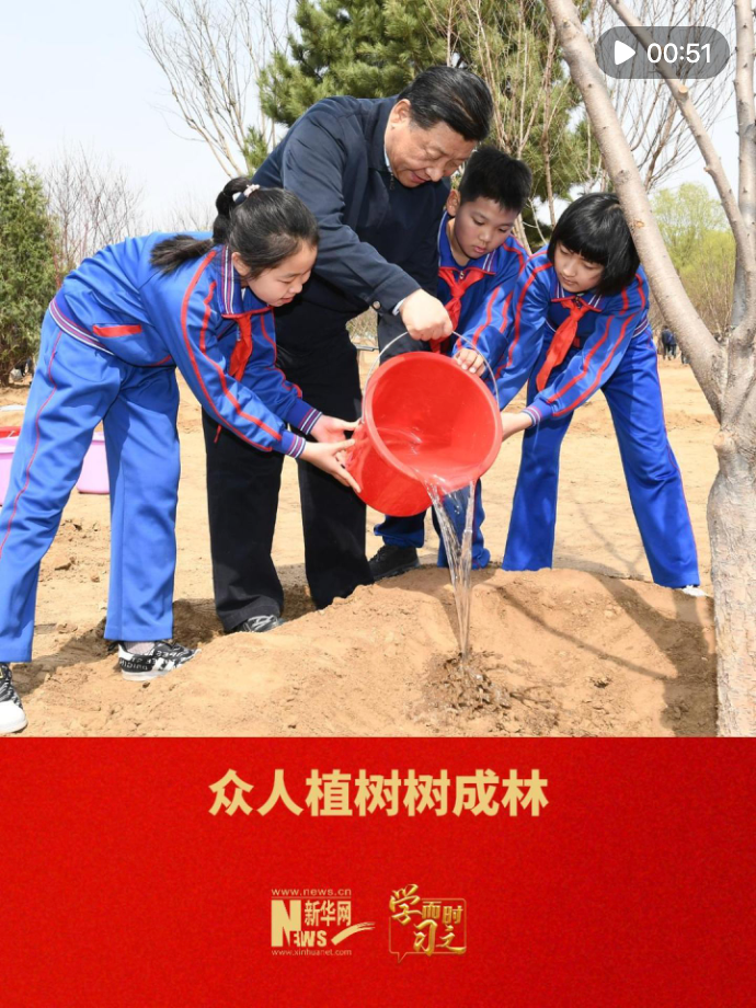黨的十八大以來,習(xí)近平總書記每年都會(huì)身體力行,參加首都義務(wù)植樹活動(dòng)。他強(qiáng)調(diào),讓我們從自己、從現(xiàn)在做起,把接力棒一棒一棒傳下去。