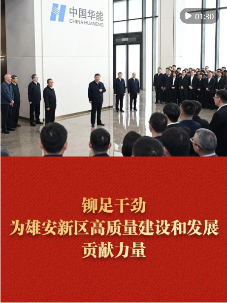 3月23日,習(xí)近平總書記來到河北雄安新區(qū),察看啟動(dòng)區(qū)建設(shè)進(jìn)展,考察中國華能集團(tuán)有限公司,了解雄安新區(qū)建設(shè)發(fā)展情況,親切慰問入駐和在建疏解單位干部職工代表。
