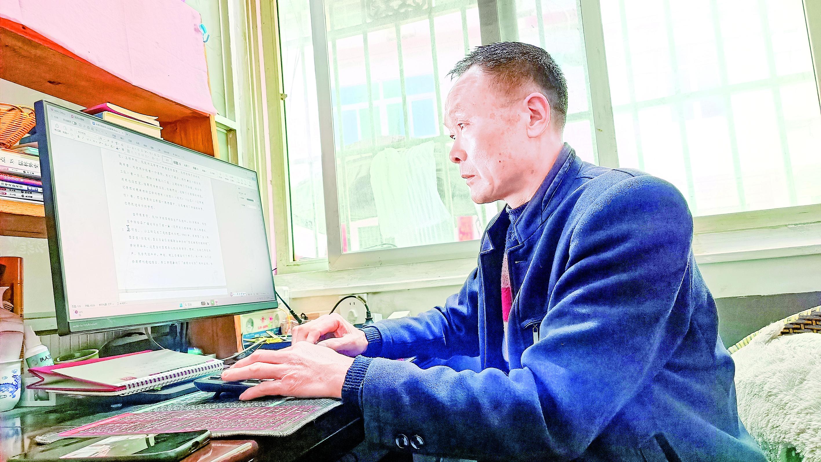 用他自己的話(huà)說(shuō),當(dāng)時(shí)寫(xiě)的那些文字還顯得很“粗糙”,可他一守就是數(shù)十年。多年來(lái),他踏遍倉(cāng)上鎮(zhèn)的溝溝岔岔,用心丈量家鄉(xiāng)的每一寸土地,用筆記錄鄉(xiāng)村的點(diǎn)滴變遷,在各級(jí)刊物、網(wǎng)站發(fā)表新聞稿件370余篇,五次獲評(píng)《安康日?qǐng)?bào)》優(yōu)秀通訊員;散文、游記、詩(shī)詞等各類(lèi)作品累計(jì)900余篇,共計(jì)130多萬(wàn)字。這些文字,從來(lái)不是閉門(mén)造車(chē)的空想,而是在田埂上、莊稼地里,在喂豬、放牛、砍柴的間隙,一點(diǎn)點(diǎn)積累、一點(diǎn)點(diǎn)書(shū)寫(xiě)而成,每一個(gè)字都沾著泥土的芬芳,藏著鄉(xiāng)村的煙火氣。