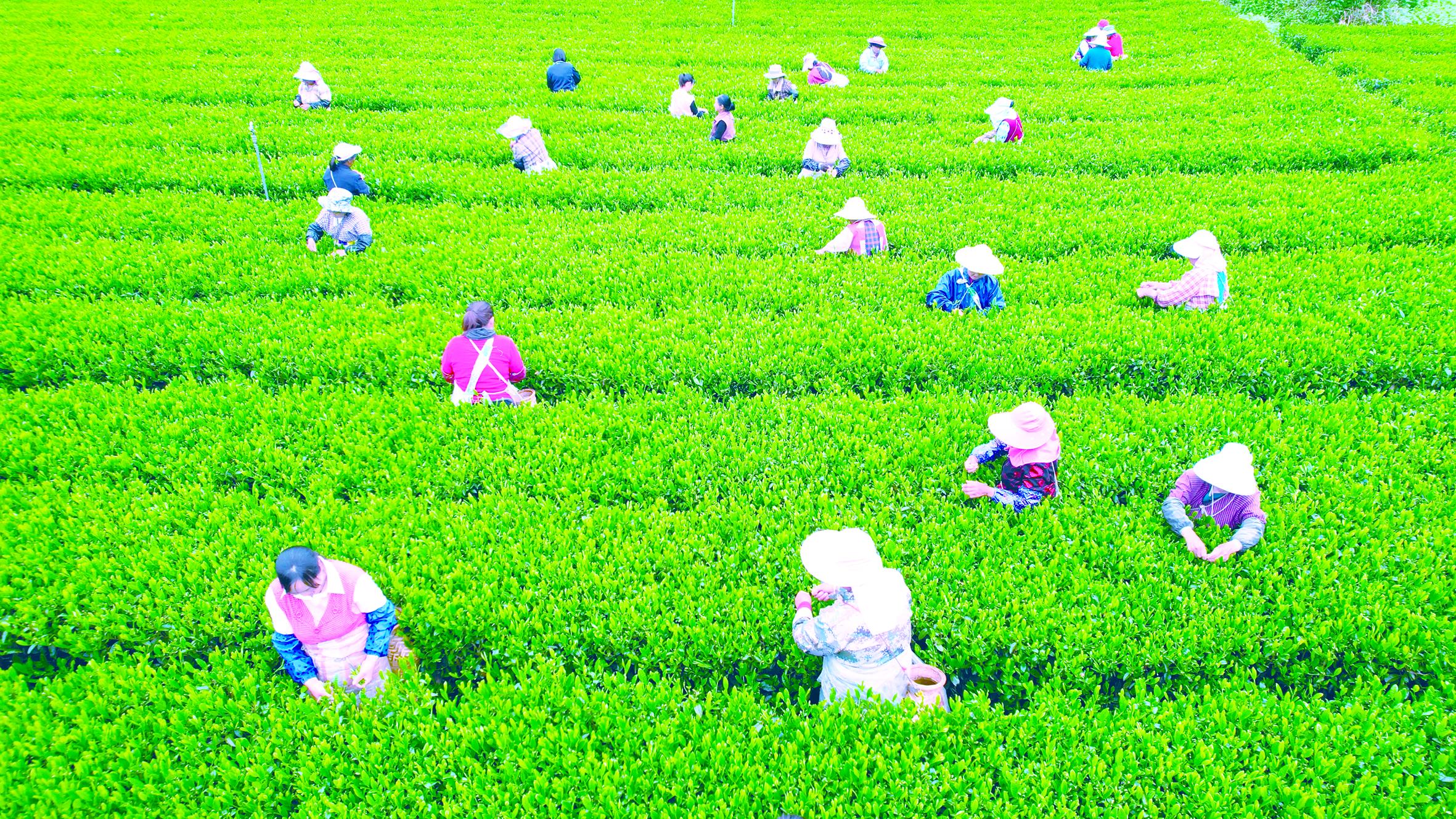 近日,在紫陽縣煥古鎮(zhèn)春堰村茶園基地,茶農(nóng)正在采摘春茶鮮葉。儲(chǔ)茂銀 攝